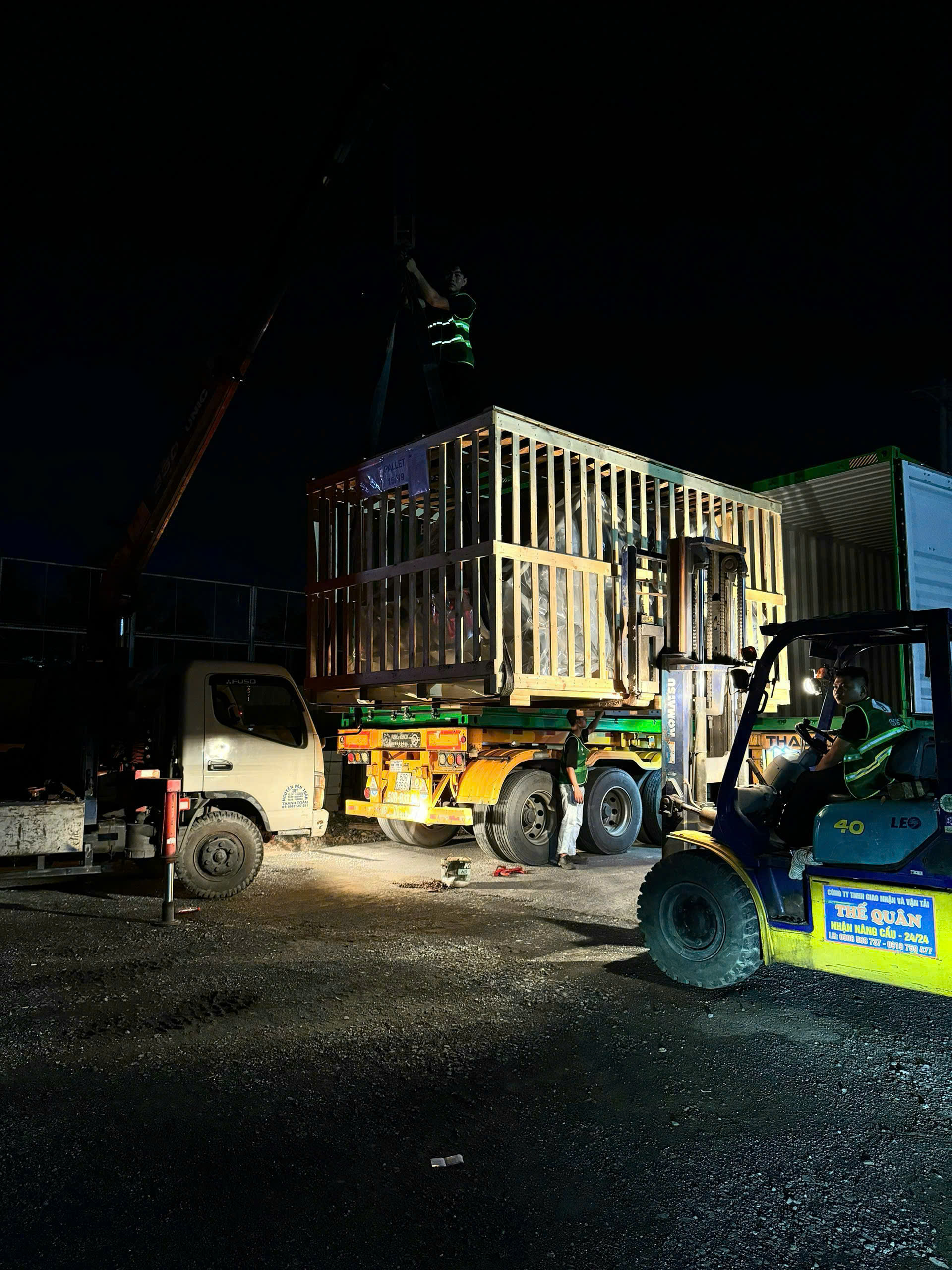 Khi mọi điều kiện đã sẵn sàng, đội ngũ sẽ bắt đầu thao tác cẩu. Quá trình này thường được thực hiện theo nguyên tắc nâng chậm, kiểm tra cân bằng, theo dõi tải và điều phối tín hiệu rõ ràng. Với những thiết bị giá trị cao hoặc địa hình khó, việc thao tác càng cần cẩn trọng hơn để tránh va chạm vào tường, cột, máy móc xung quanh hoặc bề mặt thiết bị.