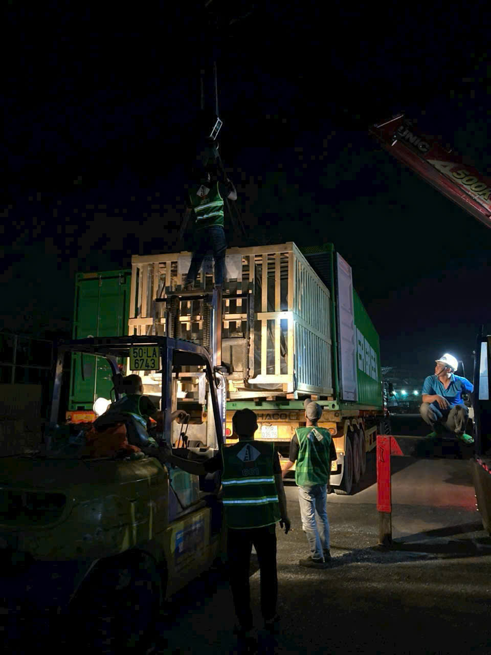 Đội ngũ giám sát luôn theo dõi toàn bộ quá trình. Khi đến nơi, thiết bị được hạ xuống và kiểm tra lại trước khi bàn giao.